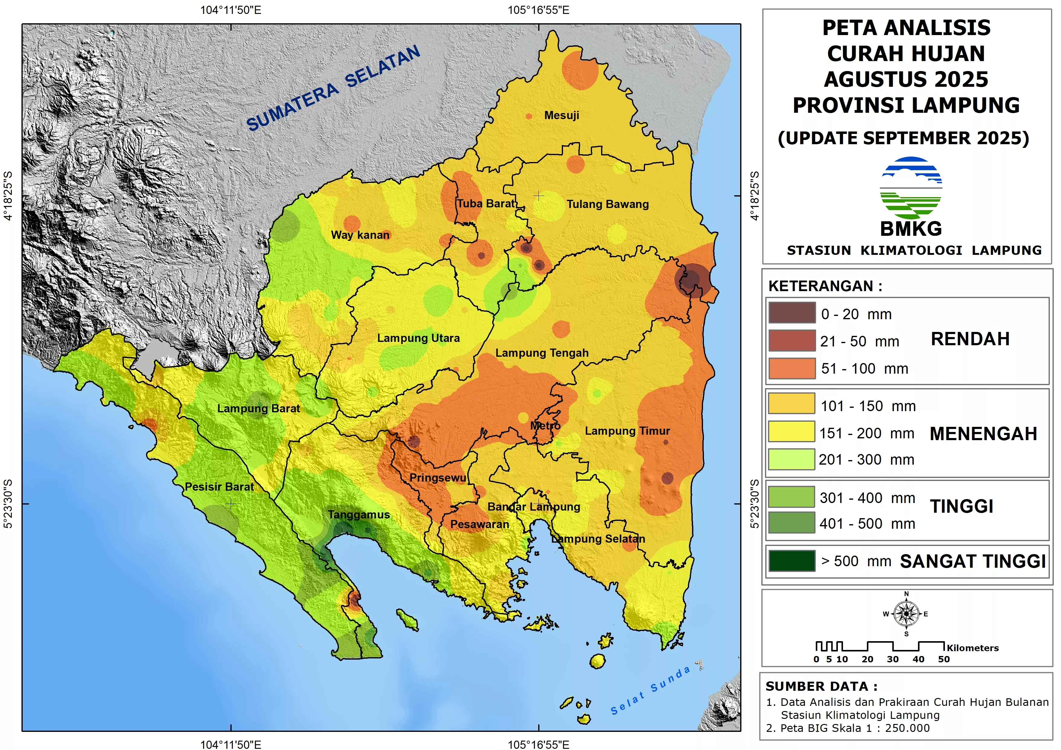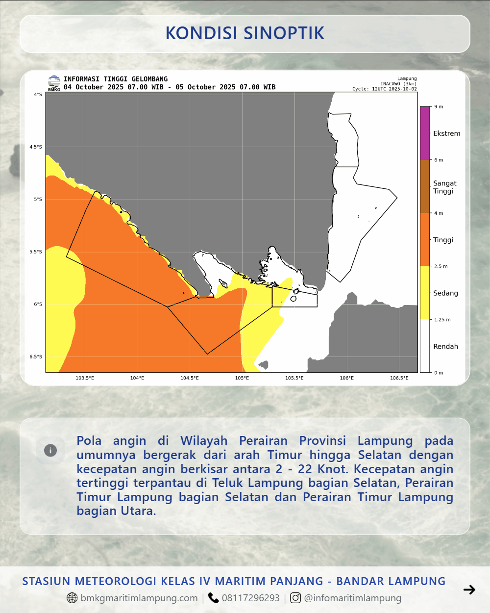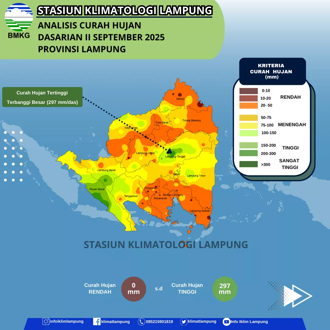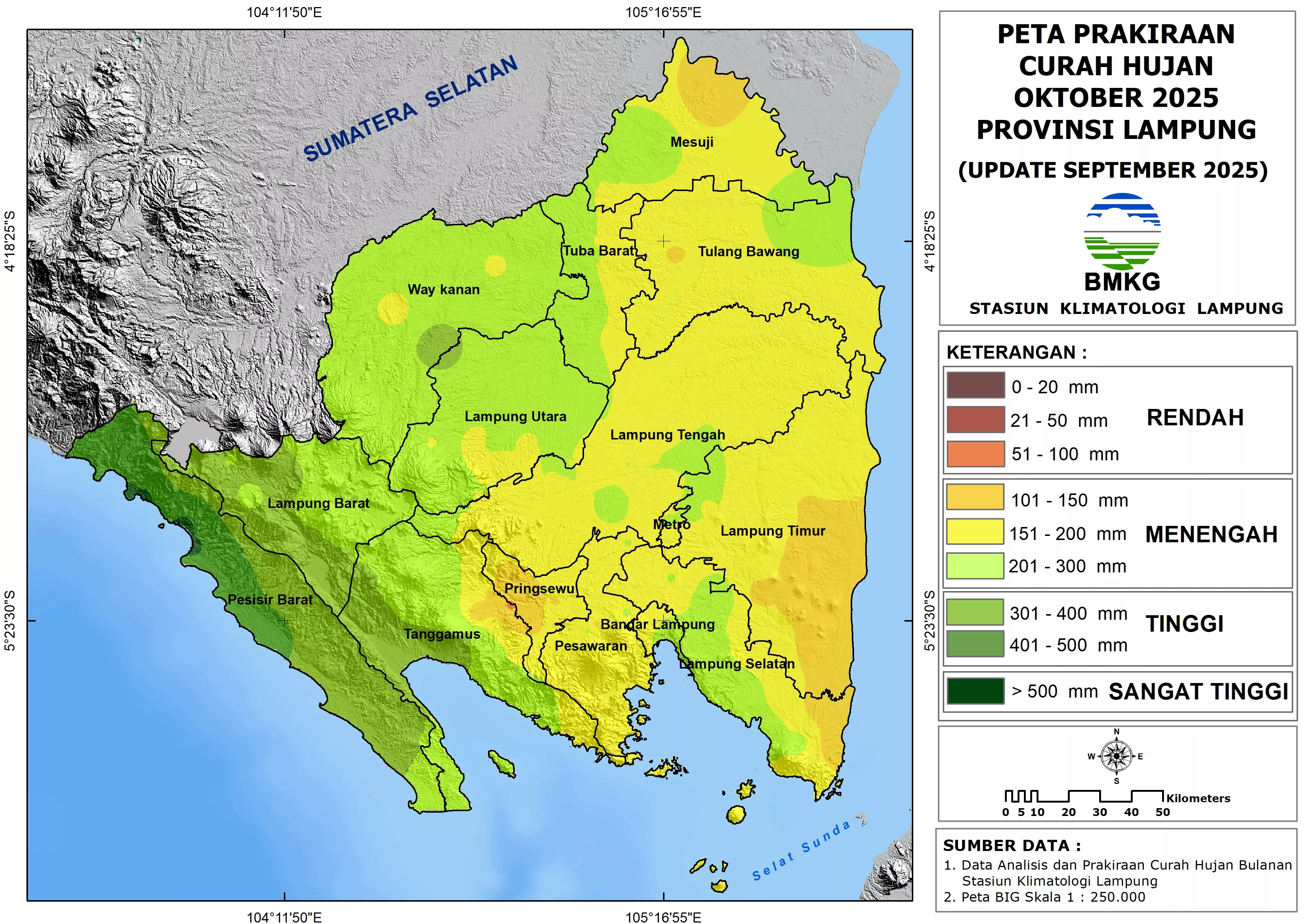 UPDATE Peringatan Dini Cuaca Wilayah Lampung tgl 03 Oktober 2025 pkl. 20:28 WIB berpotensi terjadi hujan dengan intensitas sedang hingga lebat yang dapat disertai kilat/petir dan angin kencang pada pkl 20:45 WIB di Kabupaten Lampung Utara: Muara Sungkai, Bunga Mayang, Kabupaten Way Kanan: Negeri Besar, Bumi Agung, Kabu.....