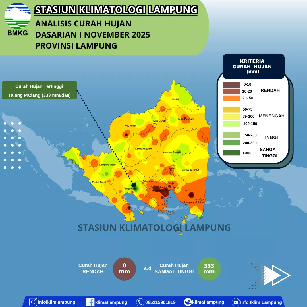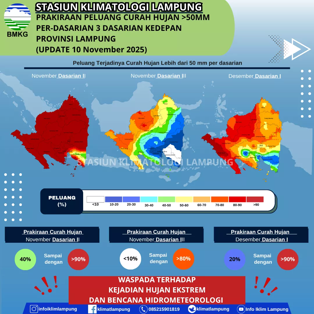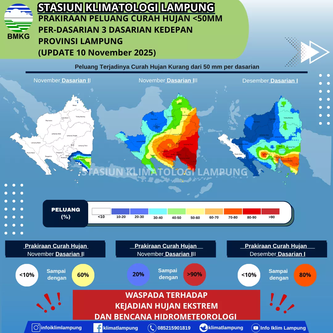 Kamis, 6 November 2025 bertempat di Pusdalops BPBD Provinsi Lampung, Nanang Buchori selaku Kepala BMKG Provinsi Lampung, bersama Koordinator Data & Informasi Stasiun Meteorologi Radin Inten II, Ru