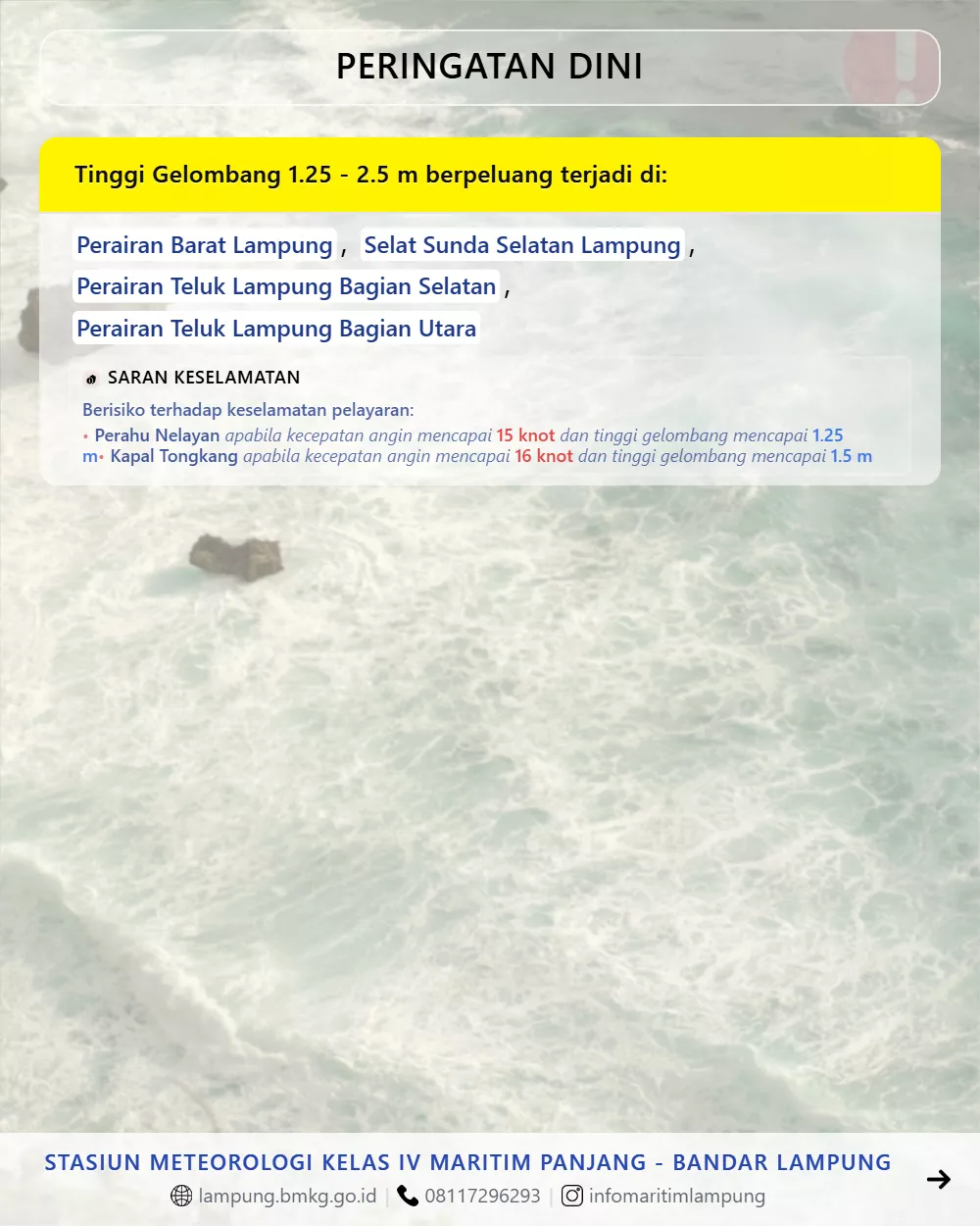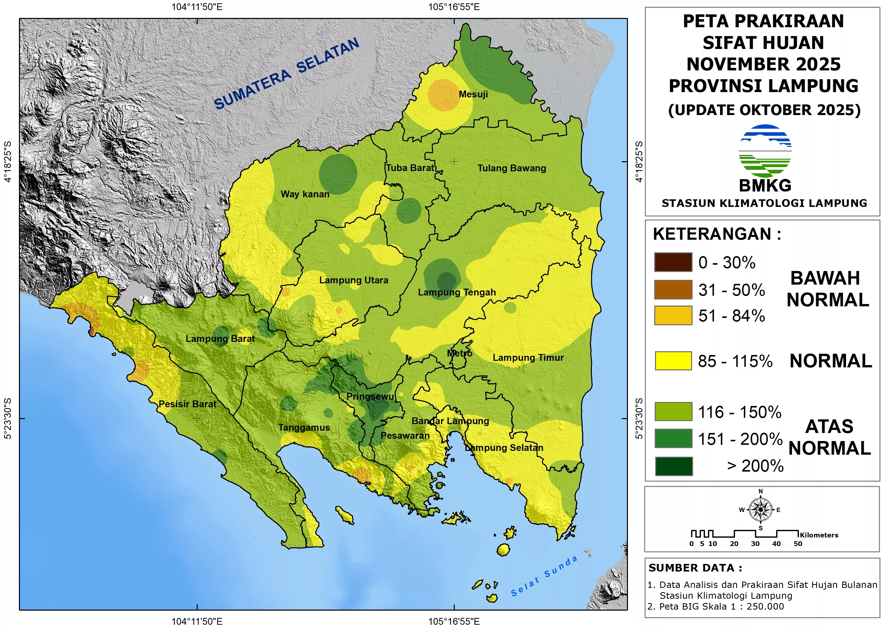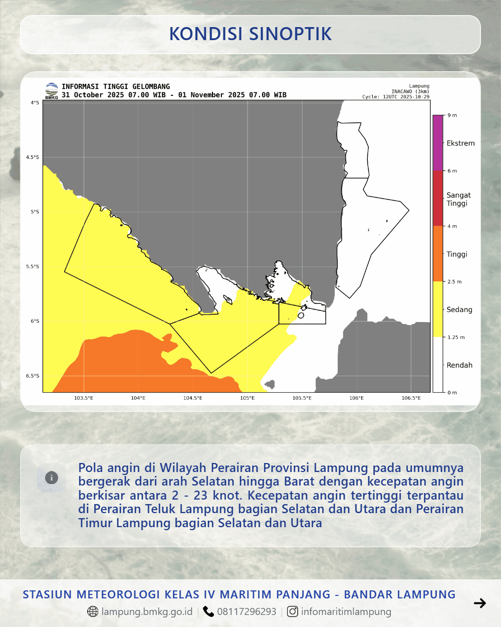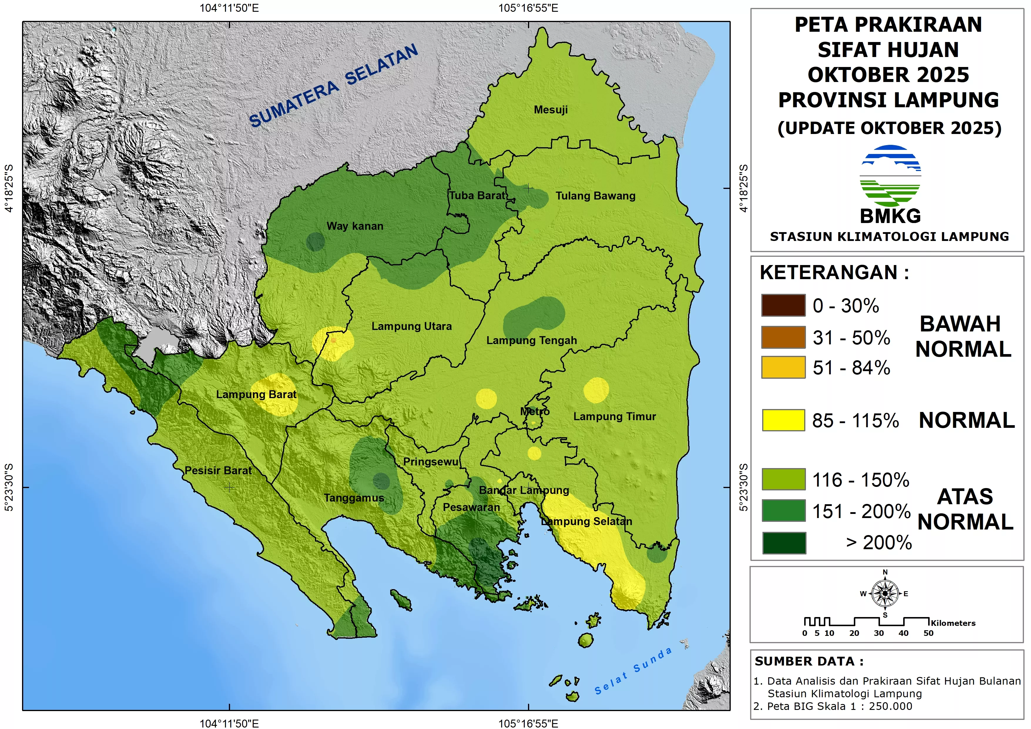 PRAKIRAAN CUACA PROVINSI LAMPUNG JUMAT, 31 OKTOBER 2025:Pagi hari: Diprakirakan cerah hingga cerah berawan. Siang–sore hari: Diprakirakan cerah berawa...