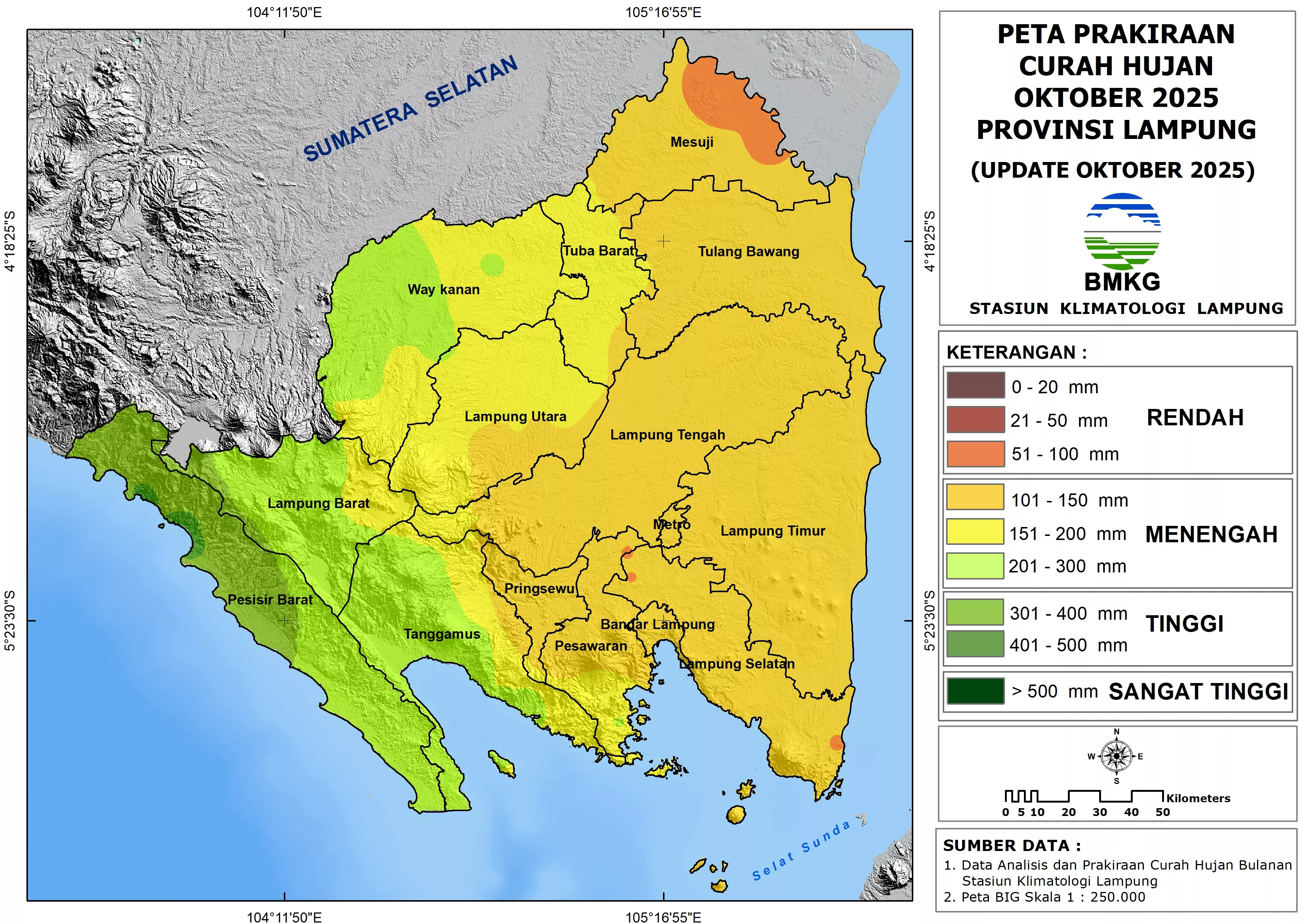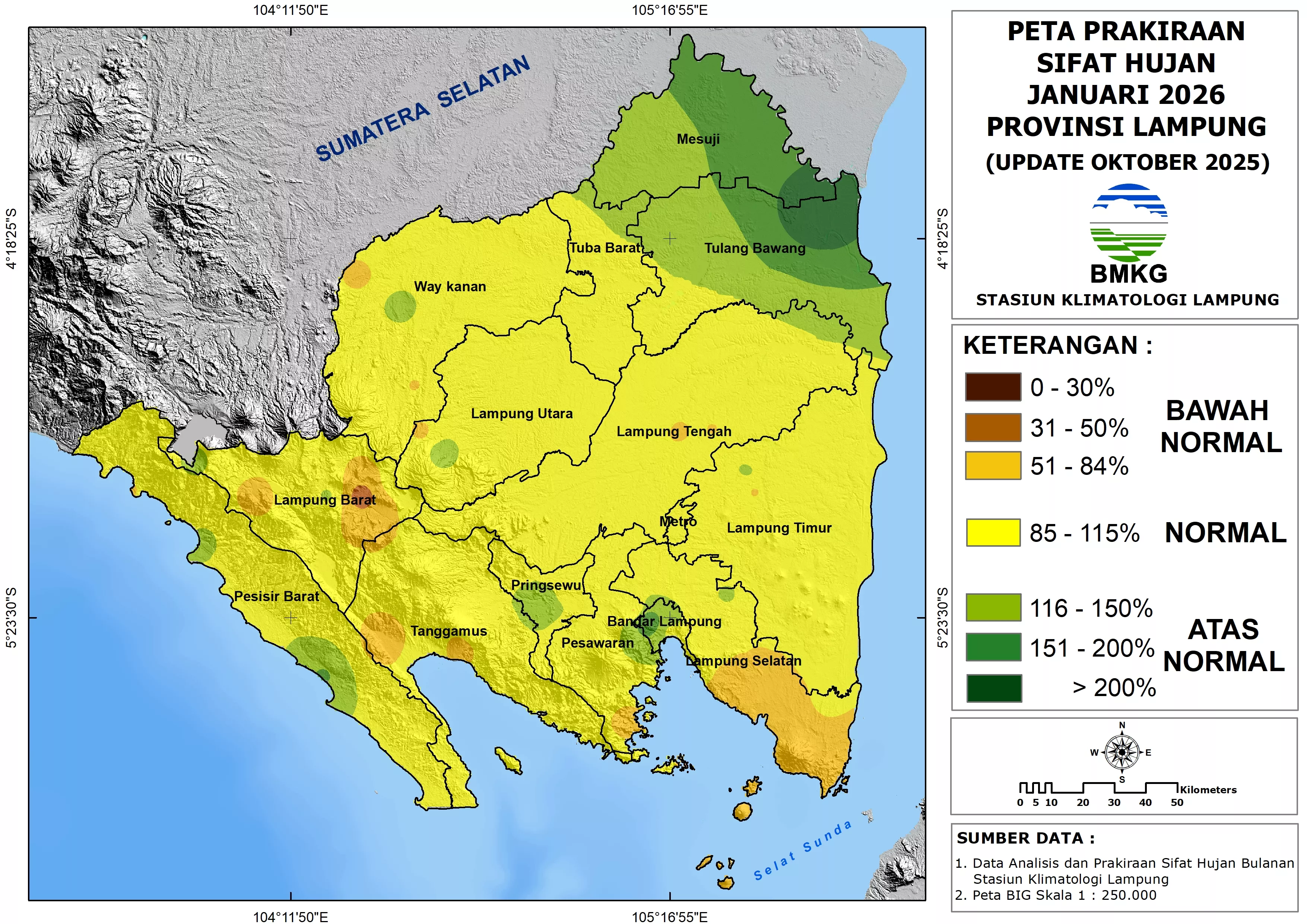PRAKIRAAN CUACA PROVINSI LAMPUNG JUMAT, 31 OKTOBER 2025:Pagi hari: Diprakirakan cerah hingga cerah berawan. Siang–sore hari: Diprakirakan cerah berawa...