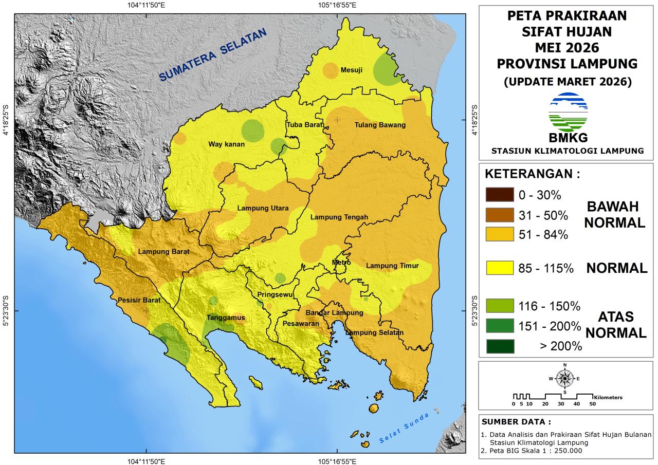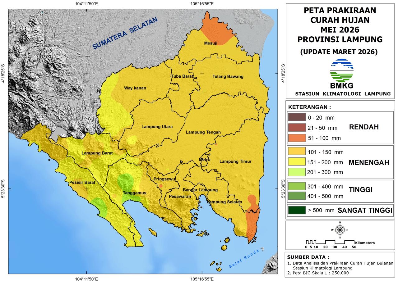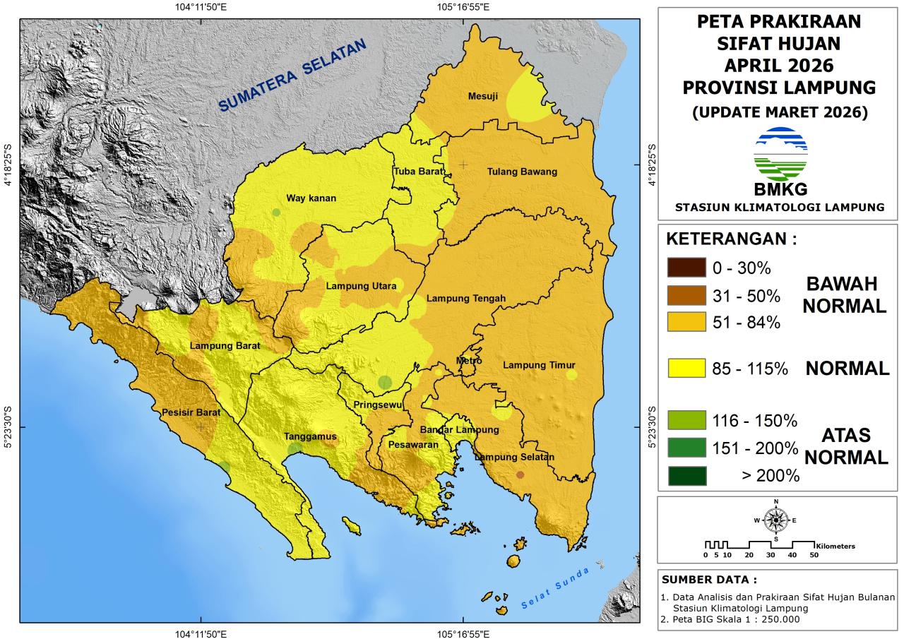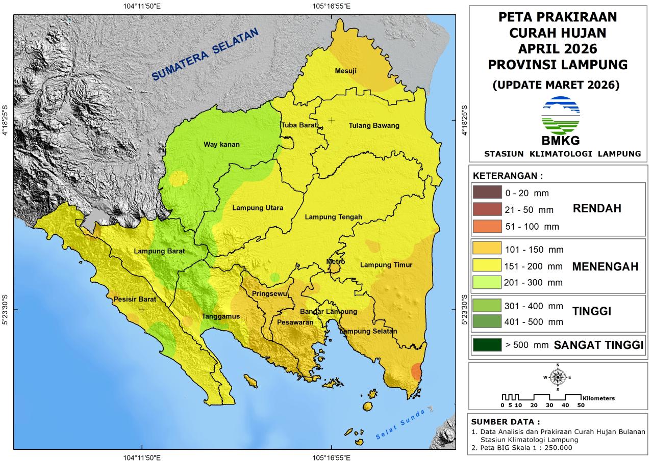 PRAKIRAAN CUACA PROVINSI LAMPUNG KAMIS, 02 APRIL 2026:Pagi hari: Diprakirakan Cerah Berawan - Berawan. Berpotensi hujan di wilayah Mesuji, Lampung Timur, Lampung Selatan, Pesisir Barat, Way Kanan.Siang-sore hari: Berpotensi hujan di wilayah Mesuji, Tulang Bawang, Tulang Bawang Barat, Lampung Tengah, Lampung Timur, Metro, Lampung Selatan, Bandar Lampung, Pringsewu, Pesawaran, Tanggamus, Pesisir Barat, Lampung Barat, Lampung Utara.Malam hari: Diprakirakan Cerah Berawan - Berawan. Berpotensi hujan di wilayah Pesisir Barat, Tanggamus, Pesawaran, Bandar Lampung, Dini hari: Diprakirakan Cerah Berawa...