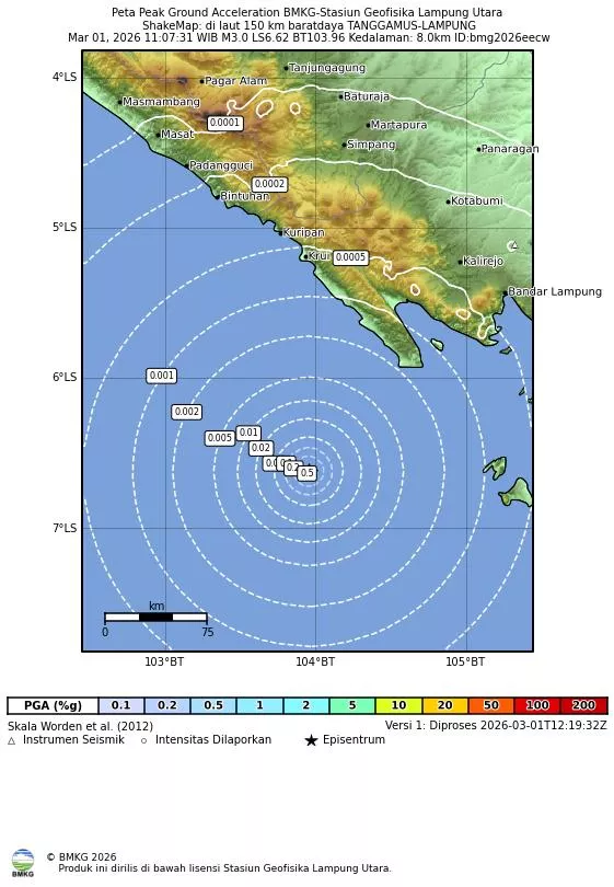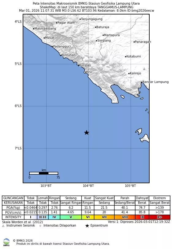 Intensity (MMI): 1