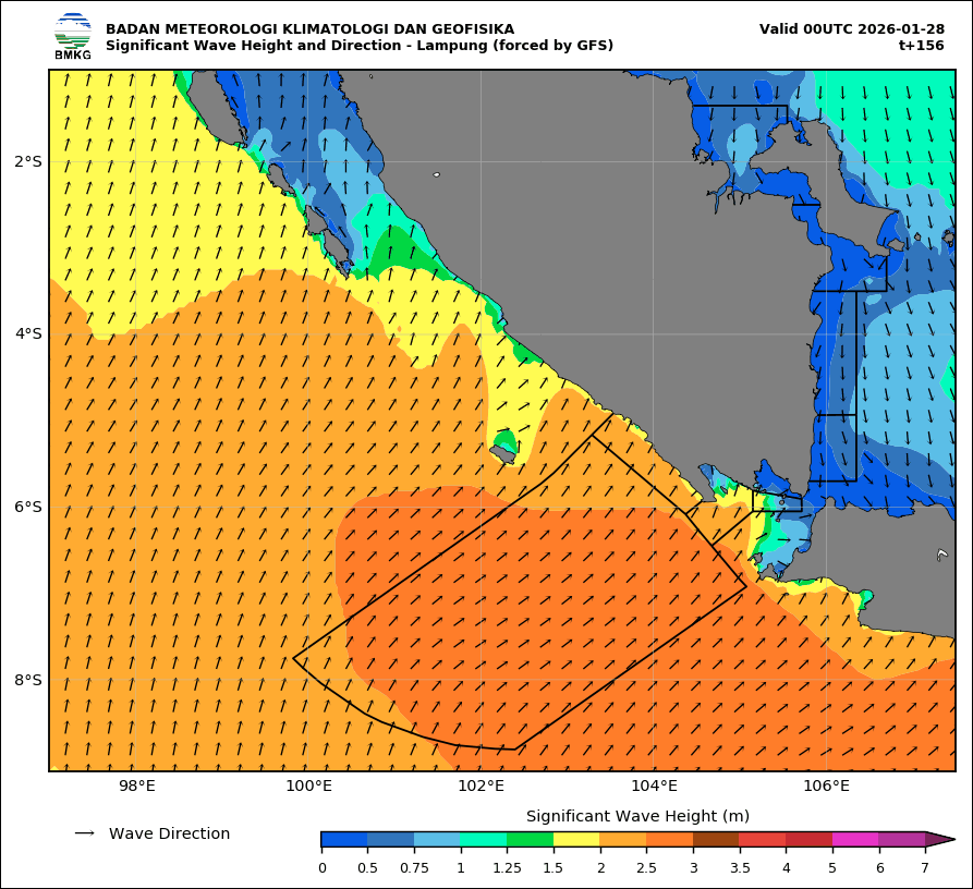 22 Jan Tinggi Gelombang Tujuh Hari Kedepan 26-01-22 WIB Admin Maritim cuaca, forecast 22 Jan 2026 23 Jan 2026 24 Jan 2026 25 Jan 2026 26 Jan 2026 27 Jan 2026 28 Jan 2026